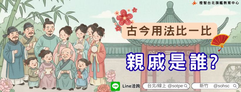 【古今用法比一比】親戚是誰? Posted on 2025-11-222025-11-22Posted in 專欄【趣味中文語詞】 我們常說「親戚不計較!」親戚說的是誰呢? 「親戚」一詞的演變,就像一部家庭的關係關聯,從古代的廣泛、政治性的,慢慢簡化成現代人熟悉的血緣和婚姻關係,現在讓我們一起來一趟穿越古今的「親戚」之旅吧! 在古代,特別是先秦時期,「親戚」的定義遠比今天廣泛而重要,甚至帶有濃厚的宗法家族和政治色彩。古人說的「親戚」,範圍大到你可能會感到意外,「親」主要指同宗族的血親(父系),「戚」則指透過婚姻連接的親屬。在早期文獻中,「親戚」甚至可以指稱父母、兄弟、妻子、伯叔這些最核心的家庭成員等直系與旁系家族,如果現代人說「我爸爸是我的親戚」可能會被笑話,但在古代,這樣說法並不奇怪,也很正常喔! 因親戚關係而衍生的是古代的親戚稱謂,是社會秩序的體現,在輩分、長幼、親疏的稱呼可說是一絲不苟的,如伯仲叔季,是古代兄弟排行的專用詞,用在父親的兄弟上,現代常說的「六親不認」,這「六親」在古代就有多種說法,但通常都圍繞著父、母、兄、弟、妻、子等成員上,另外,周朝初年提到「封建親戚,以藩屏周」,這裡的「親戚」就是指宗室子弟和姻親貴族,將他們分封到各地建立諸侯國,作為王室的屏障。親戚關係直接決定了政治權力和社會地位,可見其重要性。 隨著時代演變,社會結構發生變化,「親戚」一詞的範圍開始束縮與複雜,隨著小家庭概念的發展和宗族的強化,人們逐漸將「父母、兄弟、妻子」等最親近的直系和核心旁系成員,從廣義的「親戚」中獨立出來。也就是說「親戚」一詞逐漸轉為姻親(戚)和旁系血親(親),即除了自己家庭外,其他有血緣或婚姻關係的家族成員。到了近代,為了區分親疏,「堂」和「表」的分界線變得更加清晰,強調父系宗族的優先性,「堂」 指同姓的旁系血親,特別是父親的兄弟的子女(伯伯、叔叔的小孩),同宗同祖親近度高;而「表」 指異姓的旁系血親,包括父親的姊妹的子女(姑姑的小孩),以及母親的兄弟姊妹的子女(舅舅、阿姨的小孩),體現了古代以父系為重的家族觀念。 如今,「親戚」的意義已經基本定型:專指血親(有血緣關係的親屬)和姻親(因婚姻關係連接的親屬)的總稱,不再包括父母、兄弟姊妹等直系家族成員。不過稱謂系統仍保留傳統的「伯、叔、姑、舅、姨」等,但年輕一代常感到複雜難記,容易混淆,所以在一些非正式場合,人們會用更簡化的方式稱呼親戚,例如直接以名字或現代簡稱來替代複雜的傳統稱謂。 所以,下次當你聽到有人抱怨「六親不認」時,別忘了——在古代,這六親可能還包括你的父母喔!而今天,無論親戚是遠是近,他們都代表了你與這個世界血緣的獨特座標呢! 延伸學習 >>【線上課程】中文線上家教|詞彙擴充、遣詞造句、閱讀理解客製化中文教學1對1指導,低年級打基礎,中年級提升理解,高年級輕鬆解題!每週一小時,讓孩子的學習持續加分>>了解更多 延伸閱讀 趣味的中文語詞>>【古今用法比一比】謝字究竟是感激還是道歉呢?>>【古今用法比一比】沐、浴、洗、澡是同一概念嗎?>>【中文語詞背後的為什麼?】什麼是門檻?又為什麼不能踩呢?>>【中文語詞背後的為什麼?】古代有律師嗎?遇到官司怎麼辦?>>【中文語詞背後的為什麼?】古人為什麼要用母老虎和河東獅來形容兇女人呢?>>趣味的中文語詞:馬路究竟是給誰走的?>>趣味的中文語詞:感冒一詞竟然跟古代官員請假有關係?>>趣味的中文語詞:小犬的用法!>>趣味的中文語詞:杏林跟醫生有什麼關係呢?>>趣味的中文語詞:你知道扶老攜幼的「扶老」還有什麼意思嗎?相關語文遊戲>>紙捲句子追趕跑碰(上)>>自己動手做的小遊戲-玩大富翁也可以學中文>>中文語文小遊戲-蛇梯大進擊>>部首拉密相關教養文章>> 孩子記不住字怎麼辦?>> 孩子的數學成績,竟然與中文理解能力有關?>> 英文閱讀和寫作能力,跟母語程度有關>> 中文學習小秘笈-善用部首與字典>> 中文閱讀小知識—文字結構篇 免費家長線上講座 >> 生詞弄不懂、造句、作文不通,怎麼辦?>> 兒童情緒管理>> 高焦慮只是毛病多、愛挑剔?>> 如何培養有「心理韌性」的孩子:案例解析與訓練秘訣>> 青少年教養講座 歡迎加入橙智Line@洽詢