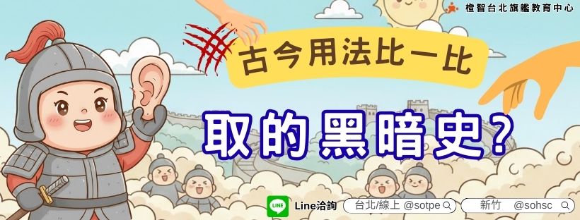 【古今用法比一比】取的黑暗史! Posted on 2025-12-172025-12-23Posted in 專欄【趣味中文語詞】 取這個字顧名思義就是用手拿東西的意思!但你知道嗎,取這個字在古代是有著令人感到恐怖的意義喔! 「取」字的甲骨文寫作:右邊是一個「又」(即手的象形),表示用手做動作。左邊是一個「耳」字,描繪了一隻耳朵的形狀,所以它的本來意義就是手拿耳朵。我們在什麼狀況下會手拿耳朵呢?那就是在殺戮戰場上了,因此,取字就有殺戮、戰爭的意義了。在古代的戰爭中,尤其是在商周時期,沒有現代的點名冊來計算敵人的傷亡人數。那麼,戰士們如何證明自己的戰功呢?最直接、最可靠的證據就是割下戰死敵人的頭顱,作為獻給國君或軍隊統帥的戰利品或信物,然而在一場大戰中死亡人數往往多達成千上萬,你想想每個士兵身上掛滿頭顱是何等的恐怖景象,而且數量太過龐大也很難攜帶,畢竟頭顱也有一定的體積,因此就演變成割取左耳以證明戰功,所以「取」這個字的核心本義,是帶著殺戮氣息的「割耳」動作,專指在戰場上獲取戰功的行為。 從「戰利品」到「所有獲得」 當戰士用手割下敵人的耳朵(取耳)後,他的目的就是「得到」戰功,久而久之,「取」的意義逐漸從「割」這個動作,轉移到了「得到、獲得」的結果上,因此,「取」字的含義便從「割耳」擴展到凡是需要用手去拿、去獲得的戰利品,無論是首級、兵器、還是財物,都可以用「取」來表示。隨著社會的進步,戰爭不再是人們生活的全部,人們需要用這個字來表達更多日常的「獲得」行為。春秋戰國時期取字已漸漸有從割耳轉為拿取的意義了,如《詩經》等早期文獻中,「取」字已經開始被用在非軍事的場合,有表示獲取、獵捕、求取、招致、娶親、拿取等意義,如《詩經.豳風.七月》:「蠶月條桑,取彼斧斨。」這裡的「取」就是拿取的意思了(拿來鋒利的斧頭)。 「取」字義轉變的黃金時期 秦朝統一後,戰功的計算方式逐漸複雜和完善,不再完全依賴血腥的割耳,這使得「取」字的軍事專門性意義逐漸弱化。隨著社會活動的增多,人們迫切需要一個通用的動詞來表達「拿」、「獲得」、「選擇」這些最基本的日常行為。「取」因為其字形本身就是「手(又)拿(取)東西(耳)」的會意結構,非常適合被引申為泛指的「拿取」,所以「拿」這個意義成為當時最主要的理解。因此,我們可以說,「取」字從血腥的「割耳」轉變成通用的「拿取、獲得」,是在先秦時期開始醞釀擴大,並在秦漢以後到現在成為主流的意義。 「取」最初的登場是多麼的血腥恐怖,然而,時光流轉,社會進步,「取」字卻成功地為自己「洗白」。它擺脫了戰場上的硝煙味和血腥氣,將「用手獲得」這個核心動作,推廣到了生活的每一個角落,徹底完成了一場浩大的「逆襲」,所以說中文詞語總是能讓人感到它的變幻魔法與豐富的歷史趣味。 延伸學習 >>【線上課程】中文線上家教|詞彙擴充、遣詞造句、閱讀理解客製化中文教學1對1指導,低年級打基礎,中年級提升理解,高年級輕鬆解題!每週一小時,讓孩子的學習持續加分>>了解更多 延伸閱讀 趣味的中文語詞>>【古今用法比一比】謝字究竟是感激還是道歉呢?>>【古今用法比一比】金字的前世今生>>【古今用法比一比】走馬看花是走得快還是>>【古今用法比一比】湯的意思古今一樣嗎?>>【中文語詞背後的為什麼?】古代的法醫叫什麼呢?>>【中文語詞背後的為什麼?】現代有影印機,那古代要怎麼複印文件呢?>>【中文語詞背後的為什麼?】古代有外賣服務嗎?>>【中文語詞背後的為什麼?】打卡是現代人工作出遊的習慣,古人也有嗎?>>趣味的中文語詞:感冒一詞竟然跟古代官員請假有關係?>>趣味的中文語詞:馬馬虎虎!是馬還是虎!相關語文遊戲>>紙捲句子追趕跑碰(上)>>自己動手做的小遊戲-玩大富翁也可以學中文>>中文語文小遊戲-蛇梯大進擊>>部首拉密相關教養文章>> 孩子記不住字怎麼辦?>> 孩子的數學成績,竟然與中文理解能力有關?>> 英文閱讀和寫作能力,跟母語程度有關>> 中文學習小秘笈-善用部首與字典>> 中文閱讀小知識—文字結構篇 免費家長線上講座 >> 孩子讀中文老是有看沒有懂?三招打造閱讀腦>> 兒童情緒管理>> 是亞斯?情障?還是焦慮行為?懂分辨才教得動?>> 養出韌性,拒絕任性!從生活小事養出抗壓力>> 青少年教養講座 歡迎加入橙智Line@洽詢