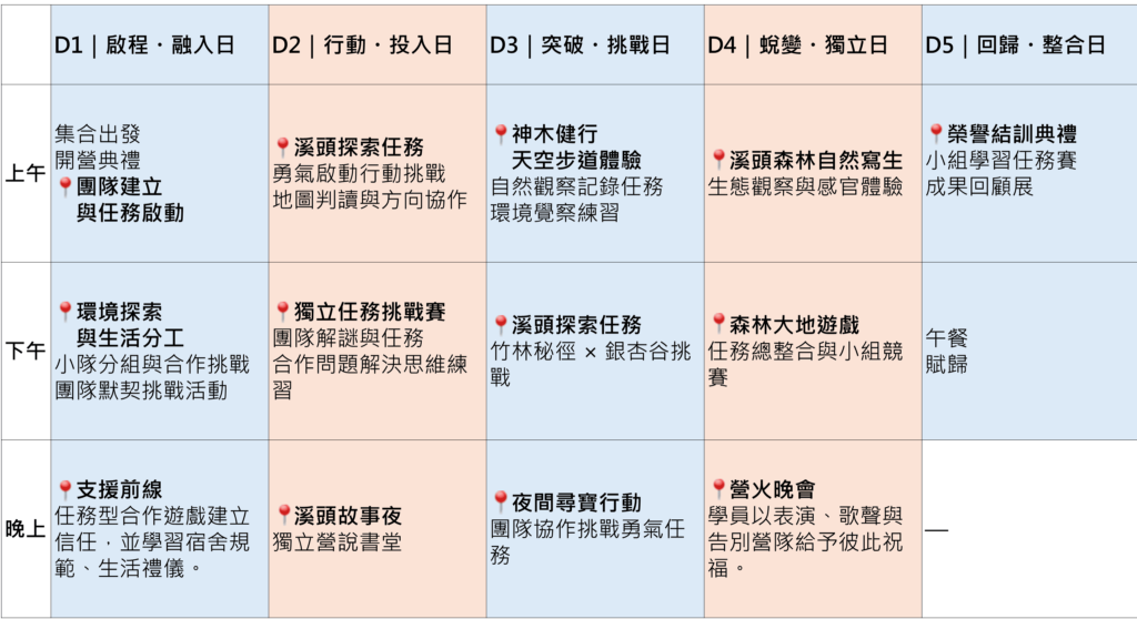 🍃 營隊精神:從依賴到獨立,從熟悉到勇氣