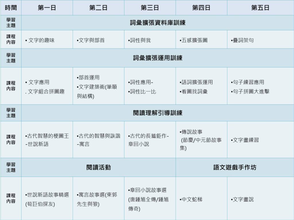 A : 孩子的造句、作文不好詞彙量不夠多是其中因素,營隊中會先擴充孩子的詞彙量,增加詞彙資料庫,讓孩子在進行造句或寫作時,可以提取的字詞變多,進而改善造句及寫作能力。