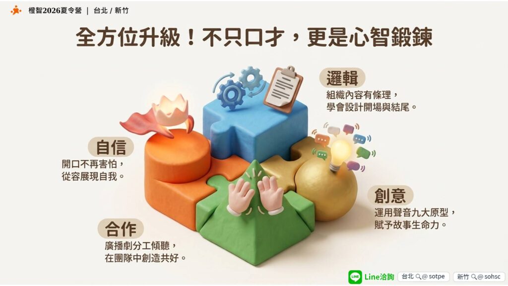 孩子不只提升口才,更學會 ✦ 自信 ✦ 邏輯 ✦ 合作 ✦ 創意表達力!