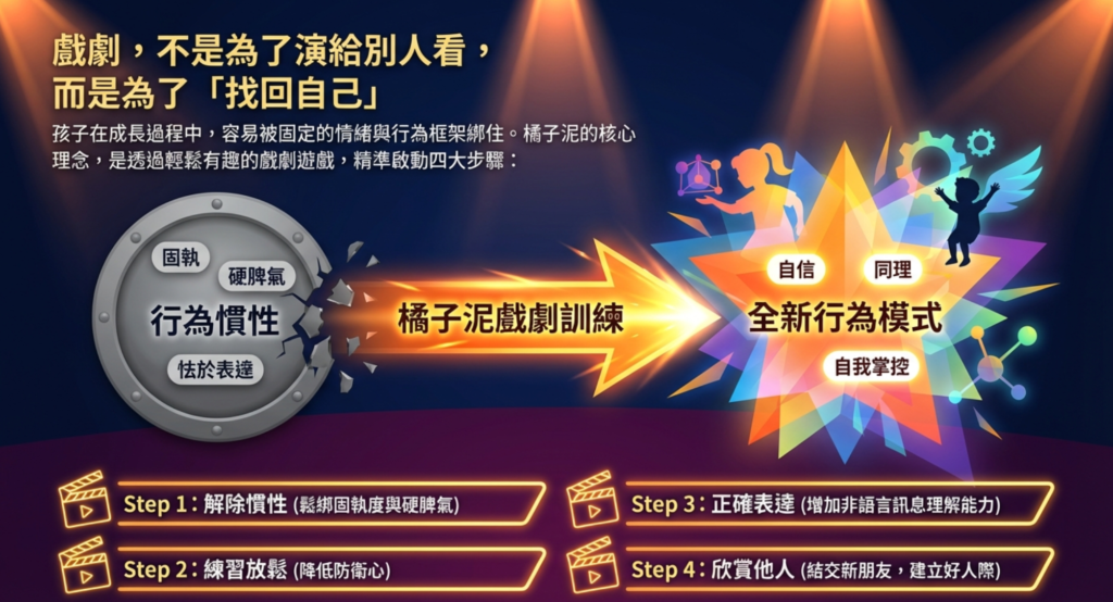 三大戲劇主題,幫助孩子:解除慣性、練習放鬆、正確表達、學習欣賞自我與他人