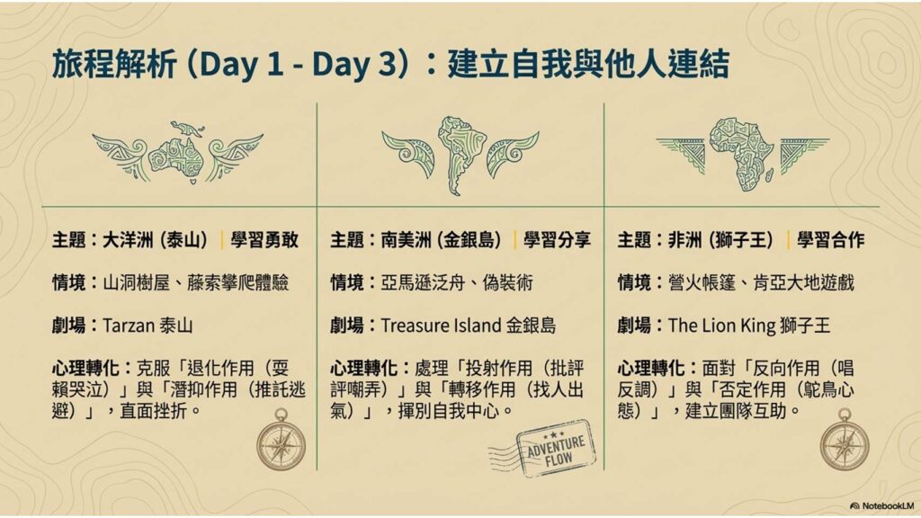 2、透過【The Lion King獅子王劇場演出與教學故事引導】,學習面對反向作用(Reaction Formation-因心理壓抑而採取背道而馳的行為)與否定作用